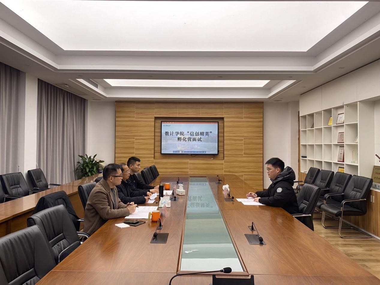 12月4日晚,Bwin体育举行“信创精英”孵化营学院面试。原临安区经信局局长汪其顺、中国人民银行临安支行行长陈梁、每果时光有限公司董事长何晓天担任面试官。