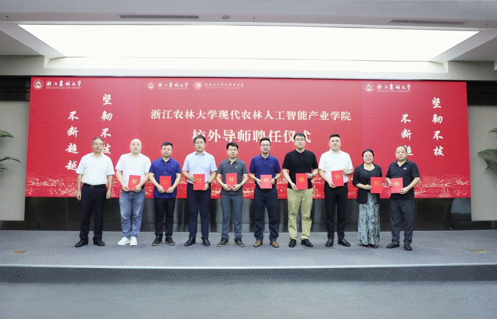 仪式上,举行了省级bwin·必赢官网现代农林人工智能产业学院校外导师聘任仪式。胡祖吉为产业学院校外导师代表颁发聘书与校徽。