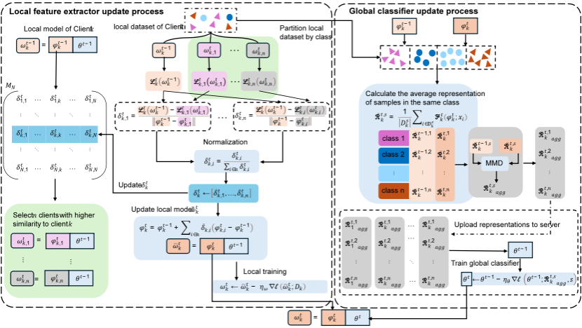 高度动态的林业监测无人机集群中客户端节点的频繁波动会导致特征空间分布和数据漂移的显著变化,对现有联邦学习(FL) 策略的稳健性构成重大挑战。为了解决这些问题,提出了一个面向林业监测场景的移动集群联邦学习框架 (MoCFL)。MoCFL 通过引入亲和矩阵来增强特征聚合,该矩阵量化了来自不同客户端的局部特征提取器之间的相似性,解决了频繁的客户端流失和拓扑变化导致的动态数据分布变化。此外,MoCFL 在训练全局分类器时集成了历史和当前特征信息,有效缓解了移动场景中经常遇到的灾难性遗忘问题。这种协同组合确保 MoCFL 在动态变化的移动环境中保持高性能和稳定性。在 UNSW-NB15 数据集上的实验结果表明,MoCFL 在动态环境中表现出色,在保持合理训练成本的同时表现出卓越的稳健性和准确性。