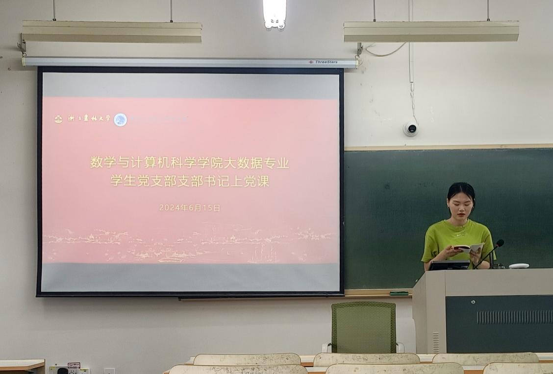 为深入贯彻全面从严治党要求,进一步加强全体党员同志的党性教育和纪律意识,提高党员同志开展党纪学习教育的思想自觉、政治自觉和行动自觉。6月15日,大数据专业学生党支部开展书记上党课活动,本次活动在教2-405召开,以线下为主,线上为辅的形式展开,实到党员16名。