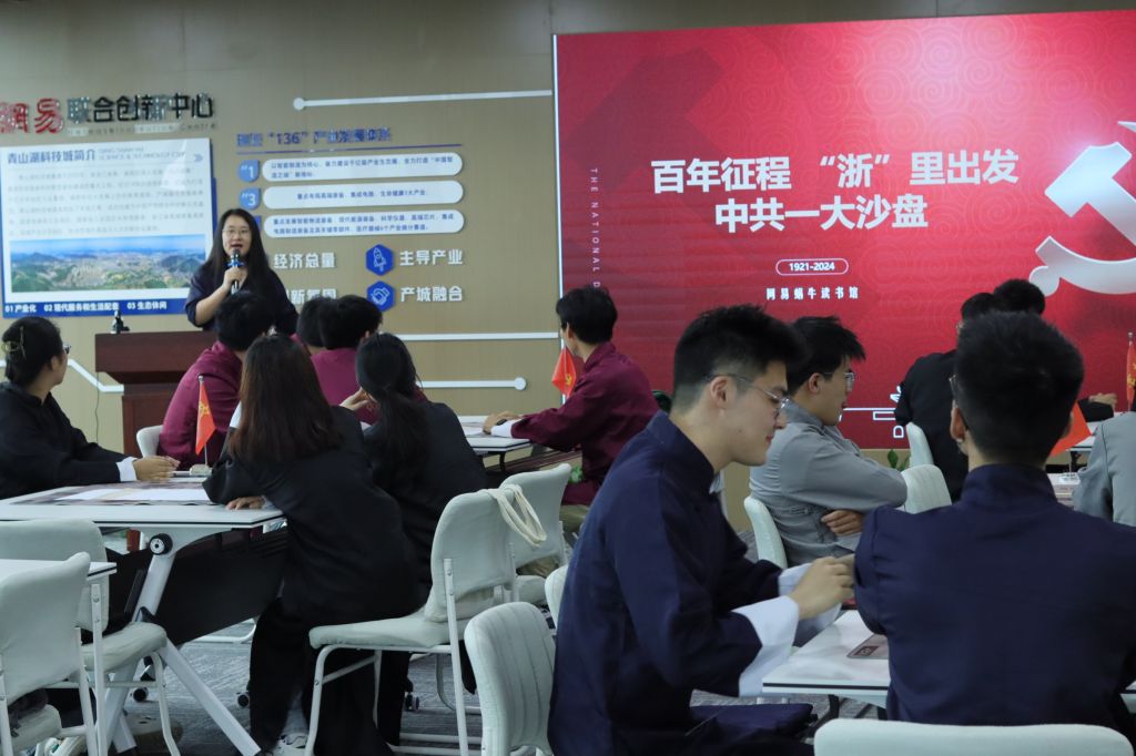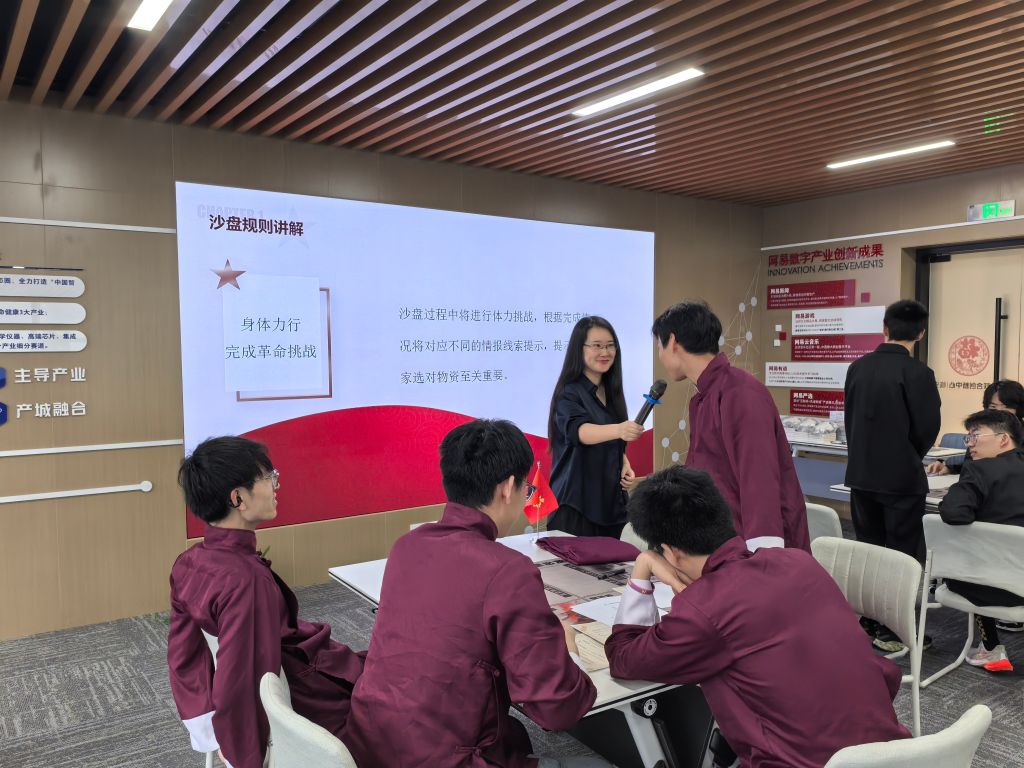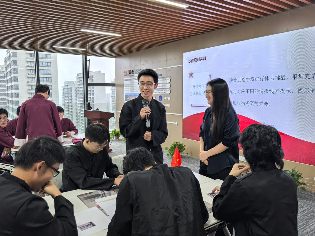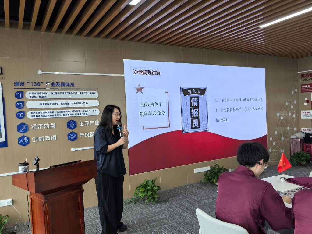 在庆祝中国共产党成立103周年之际,Bwin体育计算机专业学生第一、第二党支部组织党员、入党积极分子赴青山湖科技城网易联合创新中心,开展中共一大模拟沙盘红色主题教育活动。本次活动邀请网易蜗牛读书馆馆长周逸指导开展。