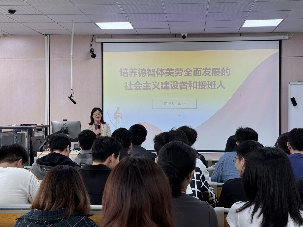9月26日中午,Bwin体育党委委员戴丹老师以“培养德智体美劳全面发展的社会主义建设者和接班人”为题,在教一楼401教室为计算机专业学生第一党支部、计算机专业学生第二党支部讲授专题党课。本次活动由党支部书记王慧老师主持,支部全体党员参与。