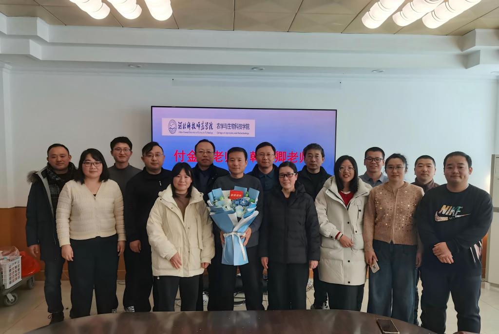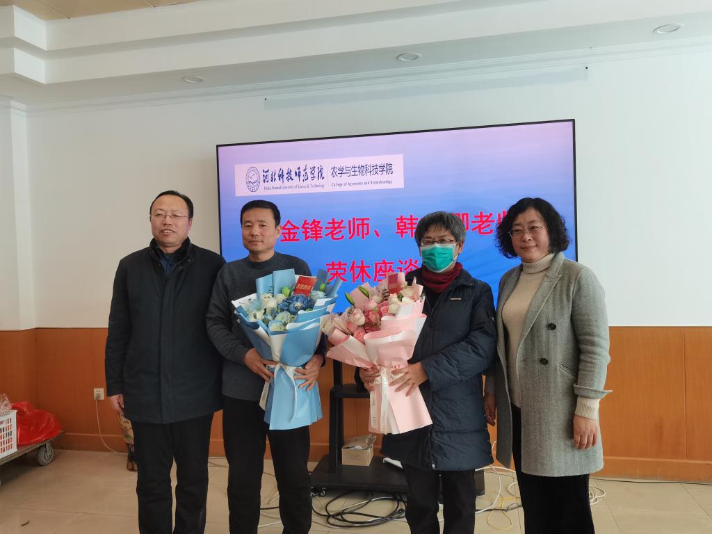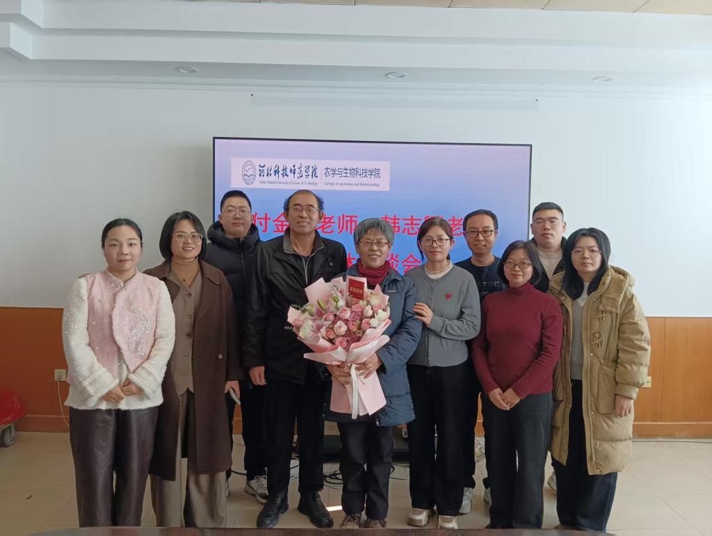 2026年1月7日,beat365平台官方网站在昌黎校区会议室举办座谈会,欢送付金锋、韩志卿两位教师光荣退休。学院党政领导、农学教学部和资环教学部教师参加了本次座谈会。