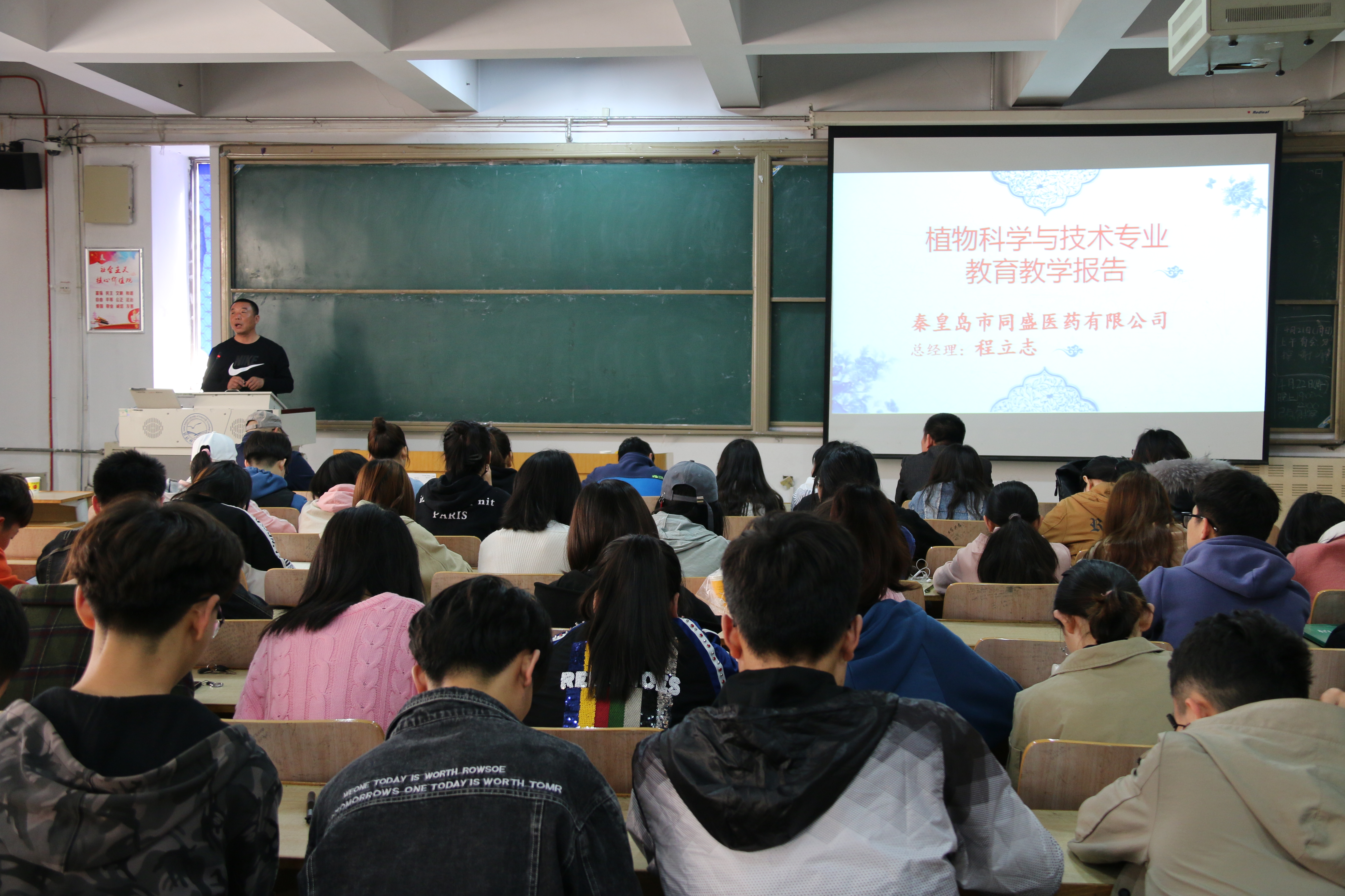 2019年4月21日,beat365平台官方网站邀请秦皇岛市同盛医药有限公司总经理程立志来我校作题为“中药材发展与人才能力需求”的教育教学报告,植物科学与技术专业、植保专业200余名学生听取了报告。