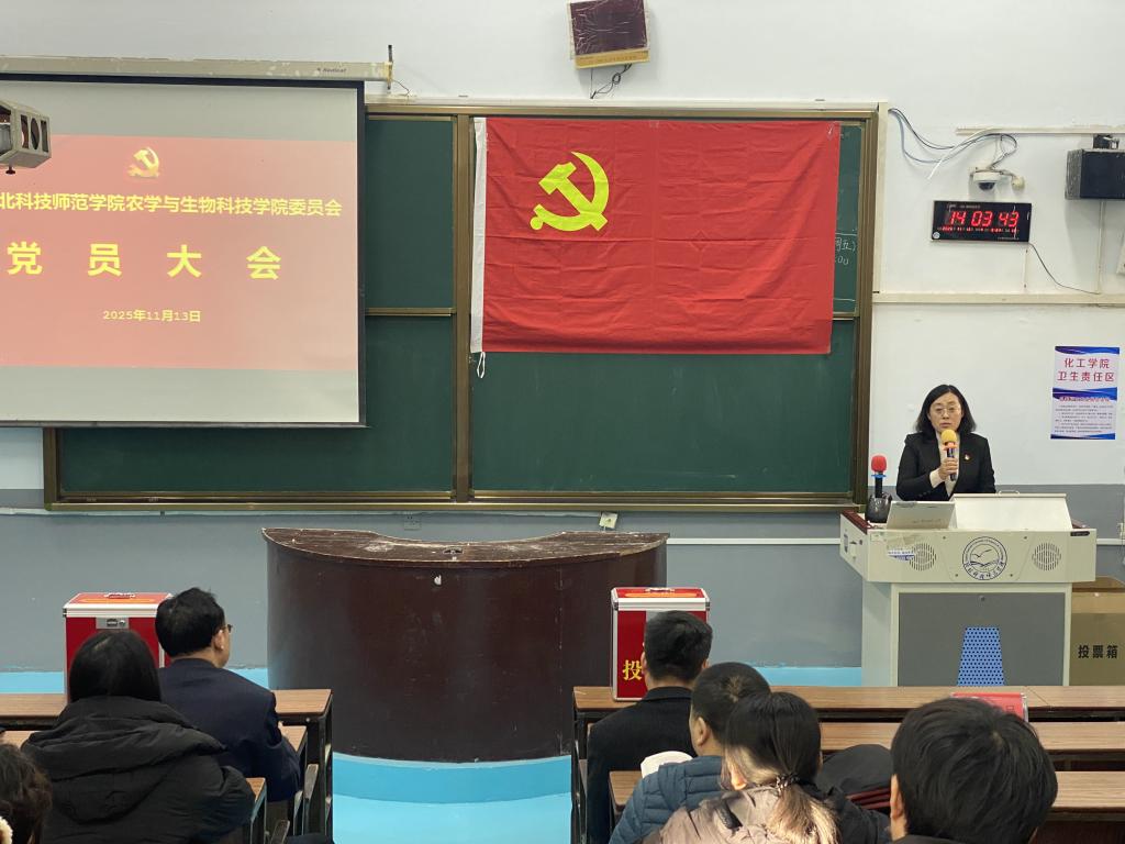 11月13日,beat365平台官方网站党委在昌黎校区四阶召开党员大会,选举出席河北科技师范学院第四次党代会代表。学院78名师生正式党员参加了大会,部分预备党员列席了会议。大会由学院党委书记主持。