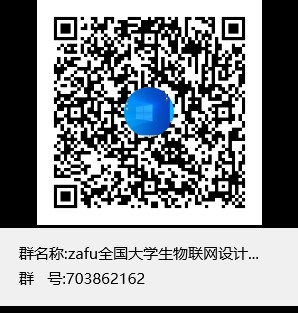 2、各参赛队伍请加入“zafu全国大学生物联网设计竞赛QQ群”,群号:703862162,群二维码见下图。联系人:易老师(QQ:8708850)。如有其他未尽事宜请及时沟通。