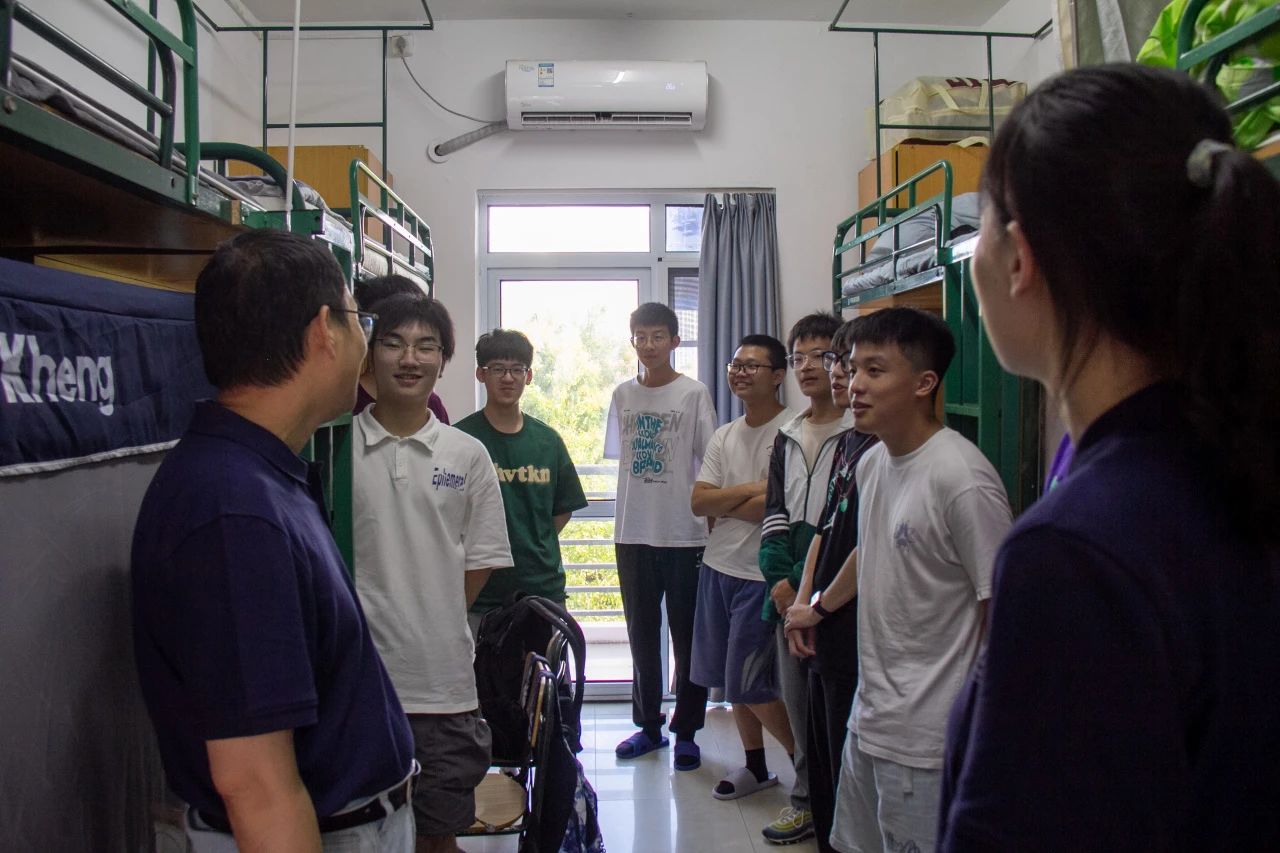 走访过程中,各位领导老师细心询问了同学们的报到情况以及生活情况,希望同学们尽快适应大学生活,尽快找到未来的学习目标。冯海林院长询问了各位同学的家乡以及来校报到的过程是否顺利。新生纷纷表示学校环境十分优美,对于即将开启的大学生活也充满了期待。冯院长鼓励新生在校期间可以多多参加学科竞赛,常与学院优秀的老师和学长学姐交流,度过充实精彩的大学生活。
