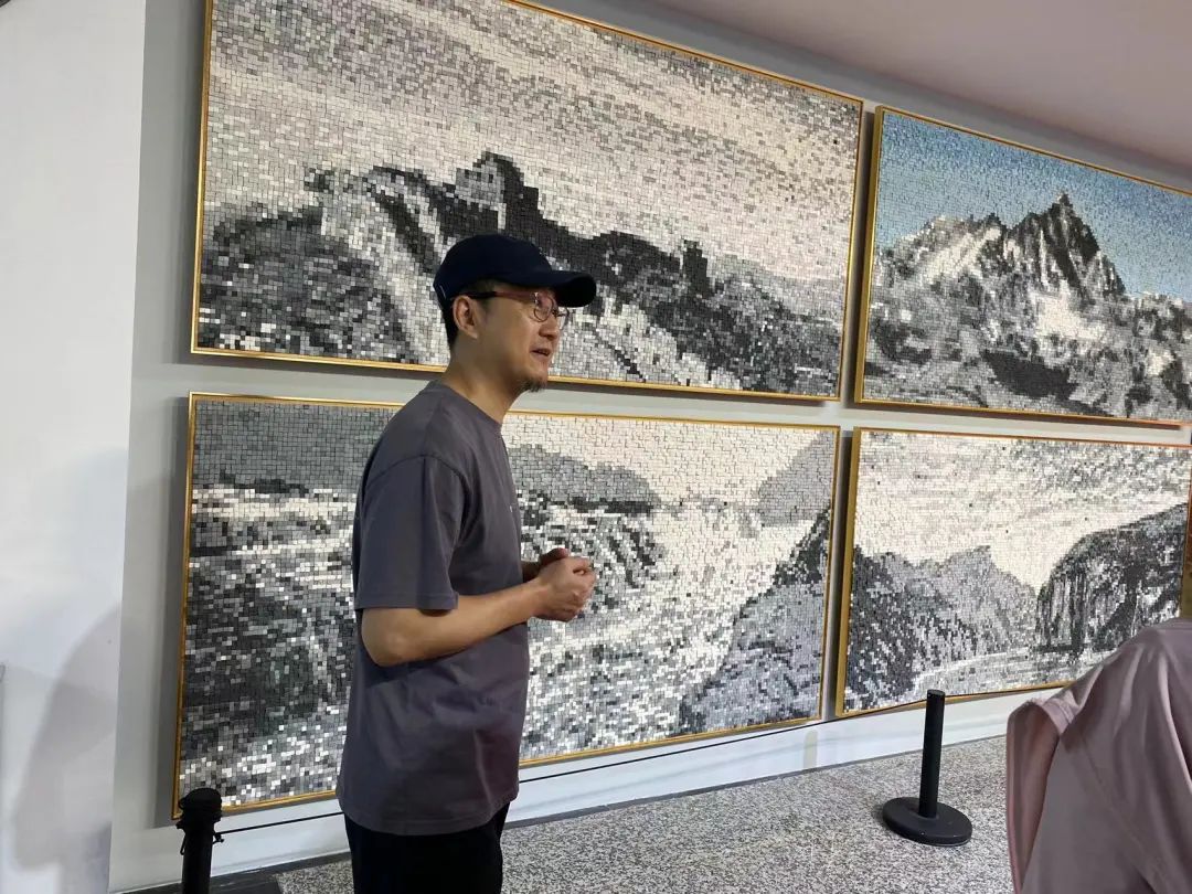 《大美河山》,陶艺画由六幅小作品组成,描绘的地点为长城、珠穆朗玛峰,井冈山,壶口瀑布,瞿塘峡和天涯海角。上为山,下为水,每幅作品由超10000个小陶块组合而成,整幅作品使用的小陶块超70000个。作品中作者刻意留白,增强了画面的深度与艺术的感染力。
