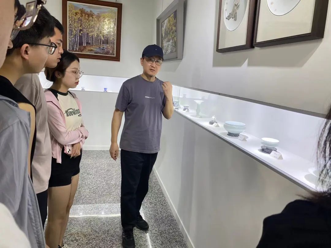 景德镇美术馆馆长岳峻热情地带领我们参观,并为队员们细心地讲解美术馆中艺术品的艺术特点与历史底蕴。主要介绍了展馆中典雅素净的青花瓷,明净剔透的玲珑瓷,栩栩如生的粉彩瓷,五彩缤纷的颜色釉瓷。“匠从八方来 器成天下走”,不同艺术风格铸就的瓷器,使我们团队的所有队员都被深深震撼,不由感叹陶瓷文化的多彩,工匠技艺的精湛。