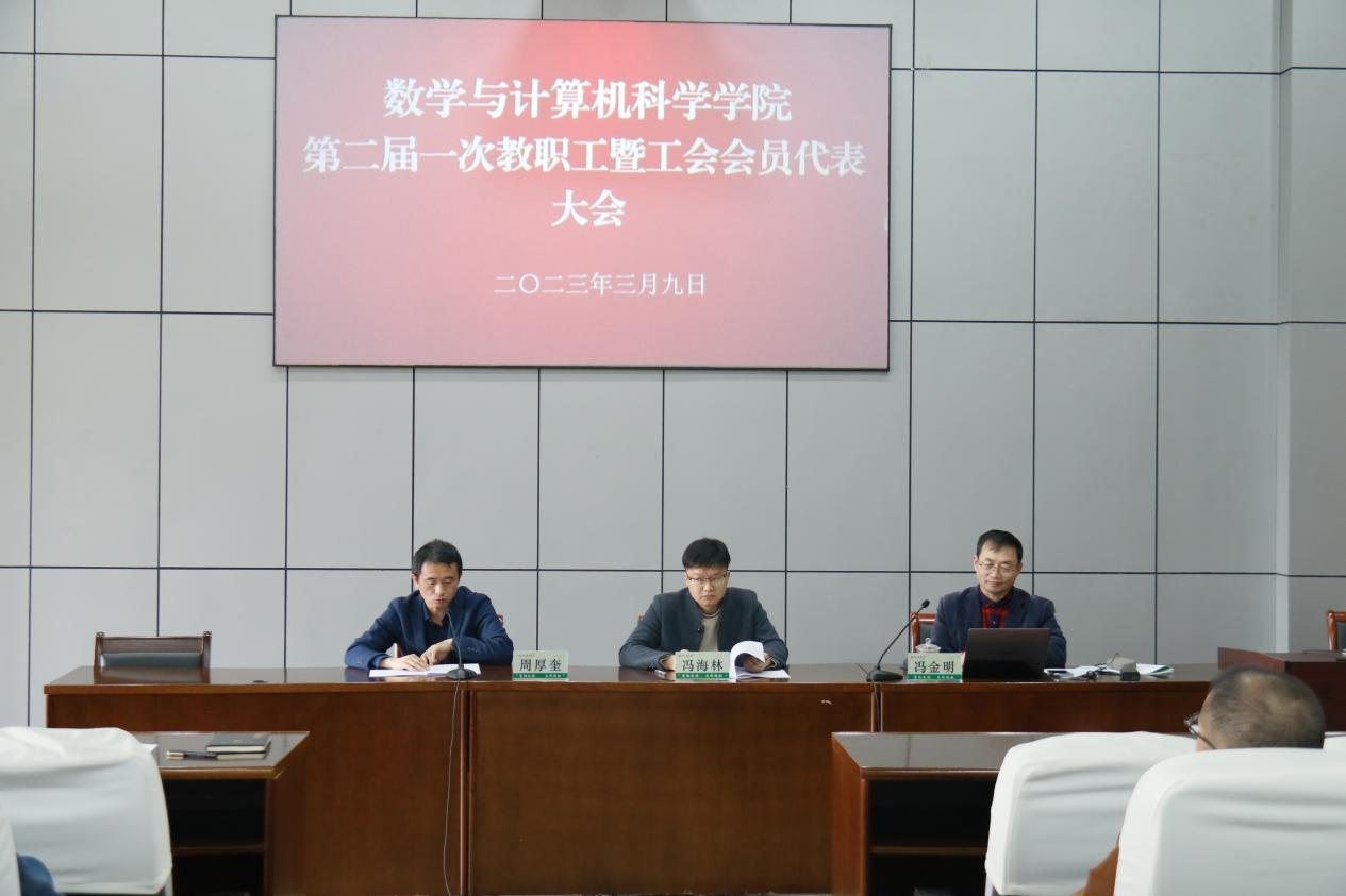 随后召开由新当选的学院“双代会”代表参加的Bwin体育二届一次教职工暨工会会员代表大会。大会审议并通过了院长冯海林所做的题为《乘风破浪谋发展,踔厉奋进新征程——为建设省内和行业内具有较强影响力的教学研究型学院》的报告。报告全面回顾了过去一年学院工作成效以及存在的问题与不足,并从“特色发展,坚定不移的走交叉融合发展战略;精准助力,坚定不移的走乡村振兴发展道路”两方面对今后工作进行了部署。