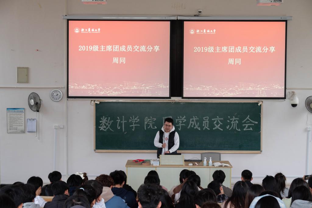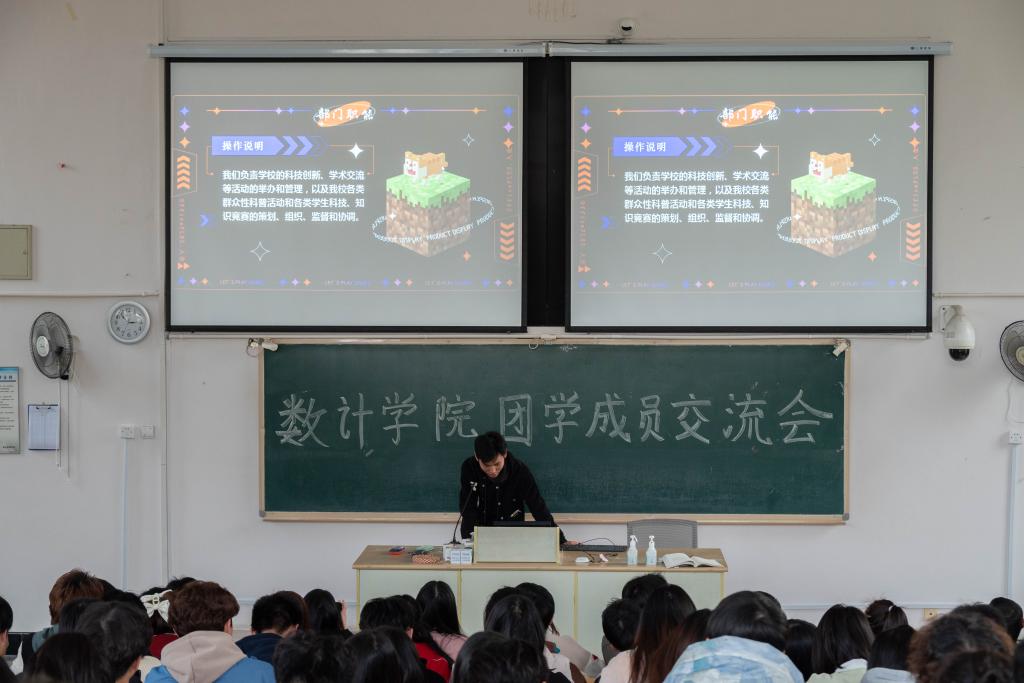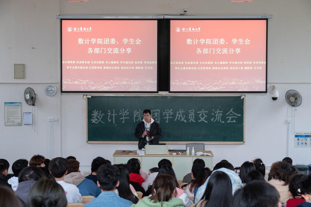 会议的第三项内容,综合联络部、权益事务部、生活实践部、身心健康部、学风建设部、组织部、科技创新部、青年志愿者服务部、社团管理部、新媒体运营部、视觉设计部、摄影部和艺术团共13个团学部门负责人依次上台交流并介绍本部门成员组成,汇报所在部门负责的相关事宜。