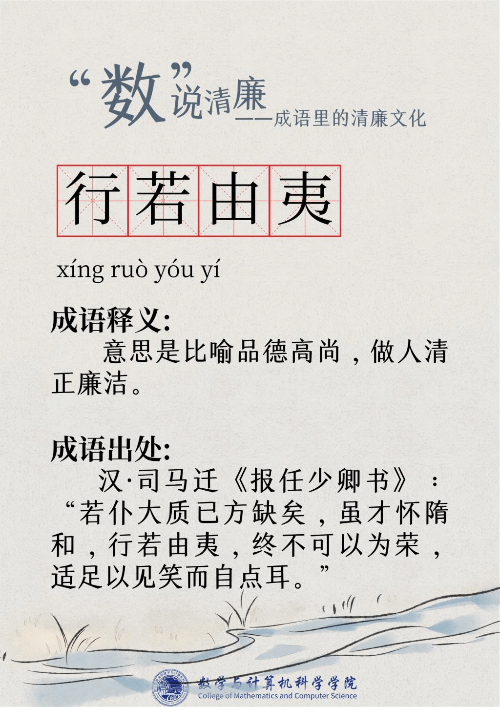 “廉洁”一词最早出现在屈原的作品“宁廉洁正直以自清”中。为人清廉正直从古至今都被视作立身处世最重要的品质之一。习近平总书记曾强调要“加强新时代廉洁文化建设涵养求真务实,团结奋斗的时代新风”。为深入挖掘中华传统文化中数字与成语诗词结合的廉洁要素,展现“廉洁”在中国传统文化瑰宝中浓墨重彩的独特地位,充分发挥清廉文化浸润校园、春风化雨的积极作用,Bwin体育现推出“数”说清廉——成语里的清廉文化系列文章,以传统文化之土壤培育清廉之花。