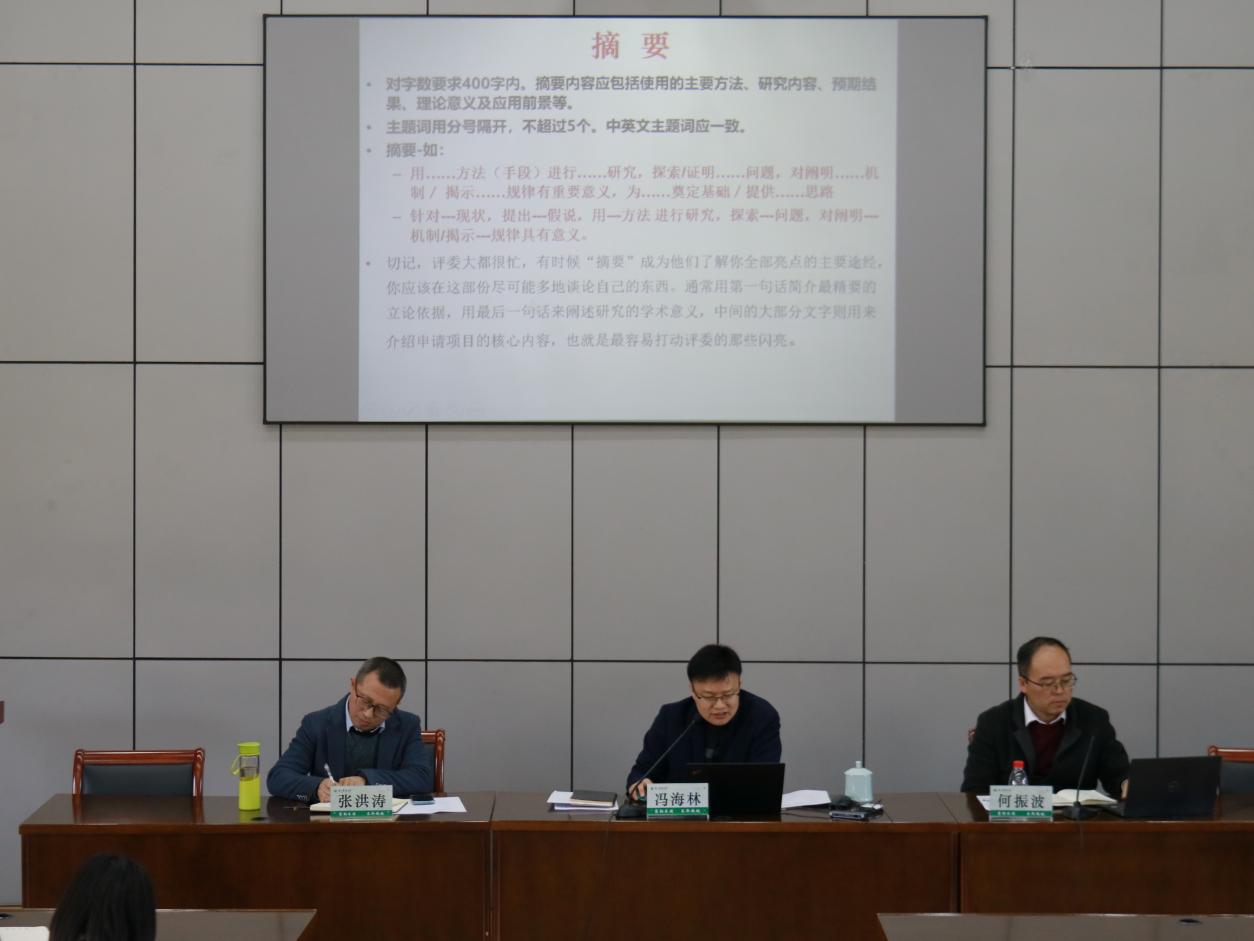 冯海林强调,申报国家基金项目是教师成长的关键一步,也有利于学院学科提升科研水平和学术影响力,希望教师们积极行动起来,共同克服困难,争取2025年国家基金申报有个好结果。