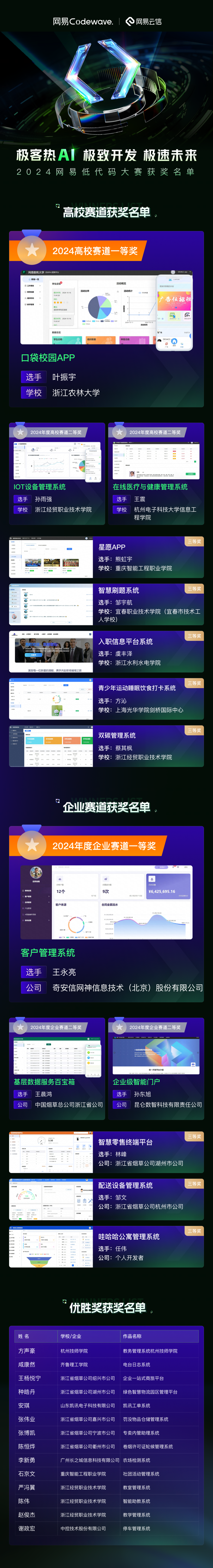 10月24日,2024网易低代码大赛决赛顺利进行,我院物联网工程专业2022级本科生叶振宇同学携他的作品口袋校园app在本次大赛荣获桂冠。