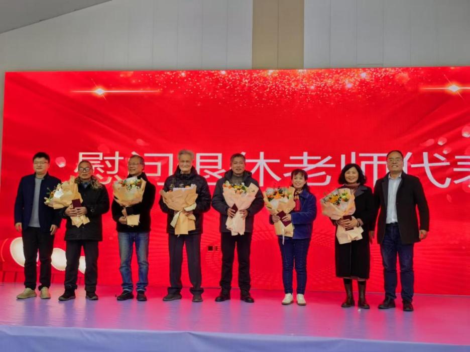 1月10日,Bwin体育6位退休教师代表应邀来到学院2024年度“数智园丁奖”表彰暨联欢会现场,学院主要负责人向他们送上鲜花和慰问金并一起合影。