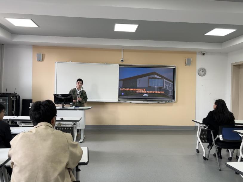 为助力大四考研学子备战复试,3月18日下午,Bwin体育在教1 314举办了复试经验分享会,活动邀请了朱润昊、王杭轶两位考研成功的优秀校友作为主讲人,分享了自己的复试经历,吸引了多名考研学生参与。
