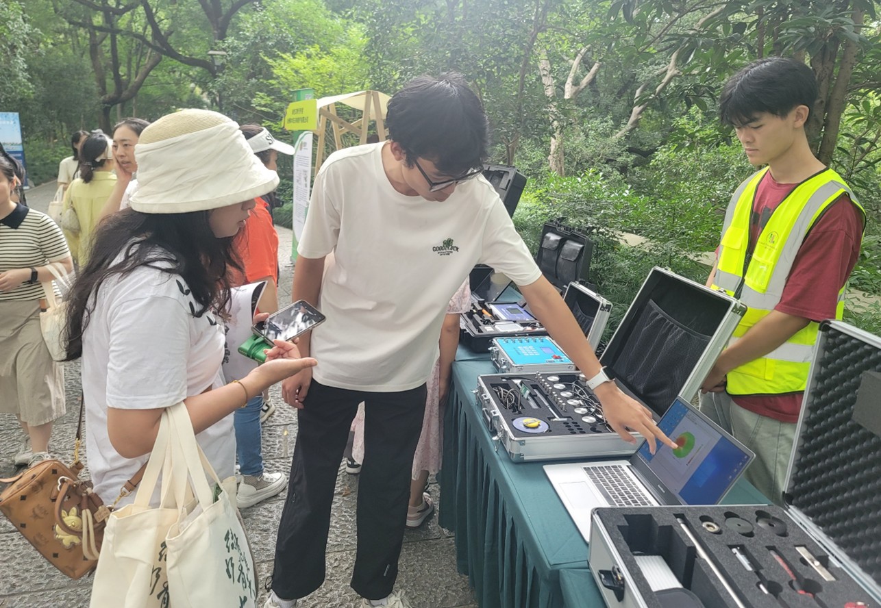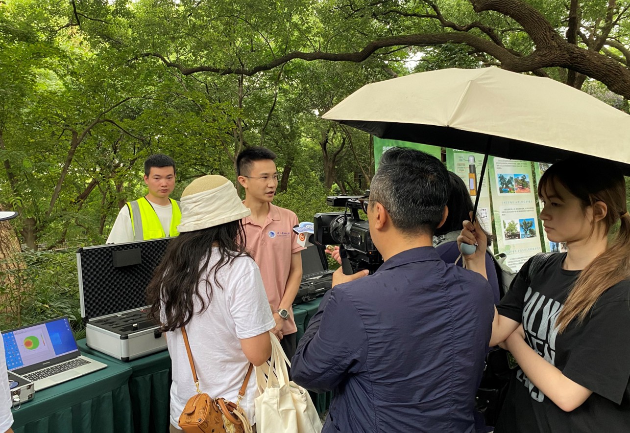 大会期间,学院展出了多款自主研发的古树名木无损检测装备如应力波无损探伤仪、树木茎流仪、针刺仪等,能够智能检测古树名木内部的空腐情况和液流速率,继而评估古树的健康状况,为实现古树名木“一树一策”、“对症下药”的精细化养护和精准化修复提供可靠的决策依据。参展装备得到了现场观众和媒体的高度关注,团队成员通过原理讲解和科技互动的方式向广大市民宣传古树名木科技保护工作,增强了公众保护古树、爱护自然的意识。此外,多位古树名木保护领域专家与团队师生进行了深入交流,并结合自身实践经验对检测装备的优化提出了宝贵的意见与建议。