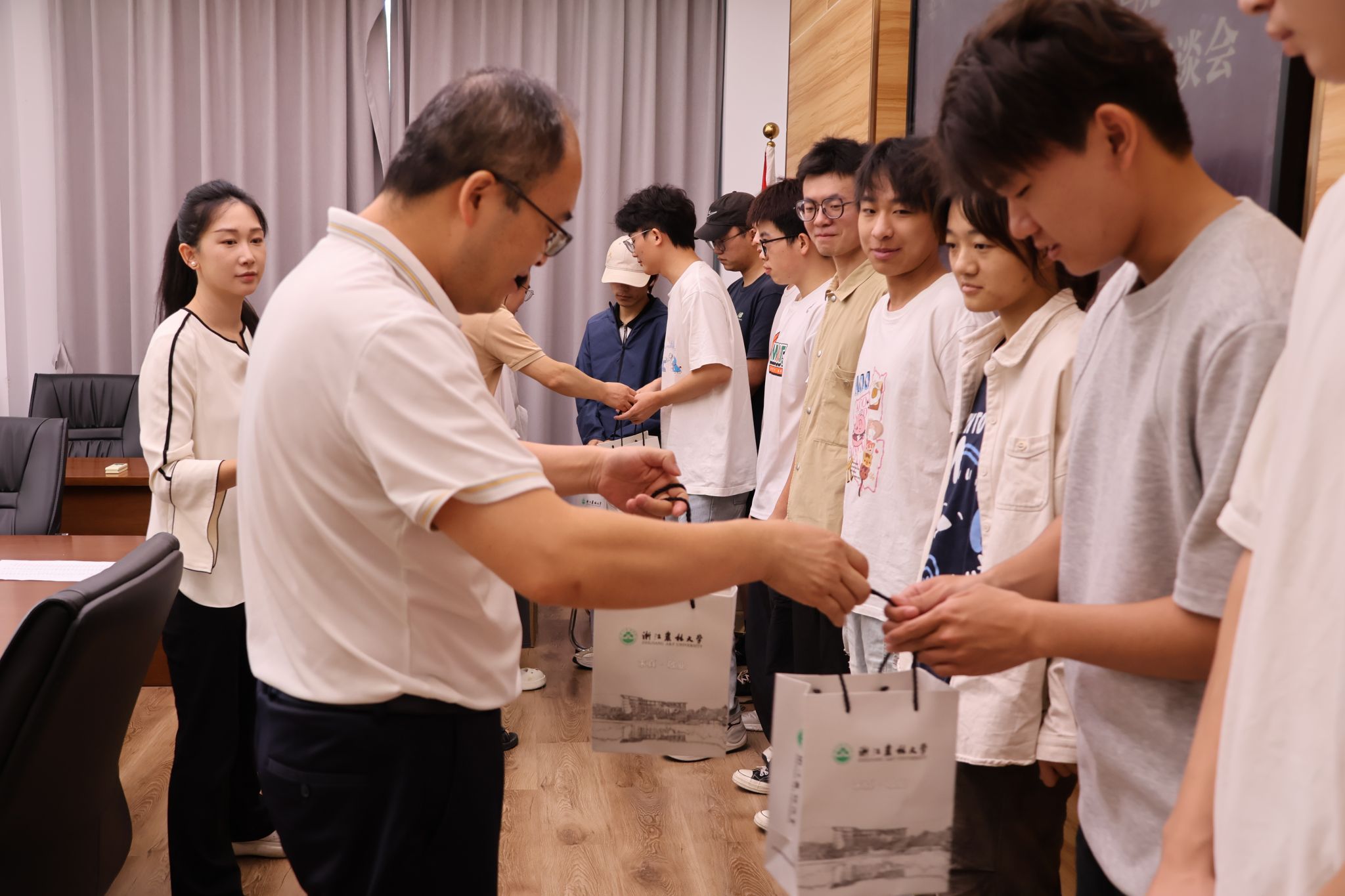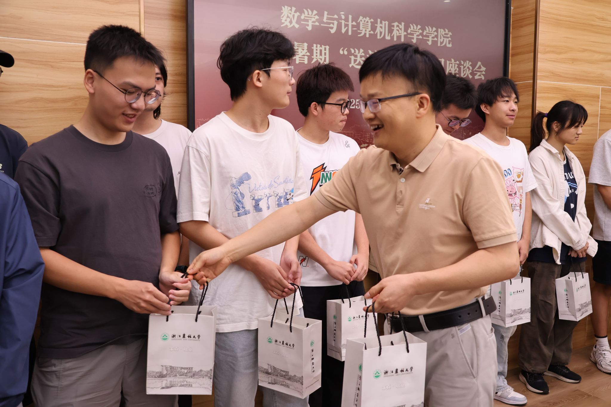座谈会上,学院领导和老师为同学们送上精心准备的清凉礼品,不仅为同学们驱散了夏日的炎热,更承载着学院对学子们的殷切期望和浓浓的关爱。